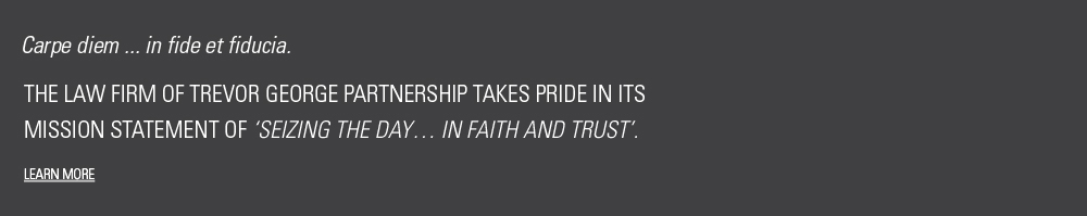 |  | COPYRIGHT © TREVOR GEORGE PARTNERSHIP. ALL RIGHTS RESERVED. The website of Trevor George Partnership provides information of a general nature only. Nothing in these pages is to be taken, construed or otherwise relied upon as being legal or professional advice. Should you require legal or professional advice, please contact the relevant partner listed herein. You may also send inquiries to : | |||