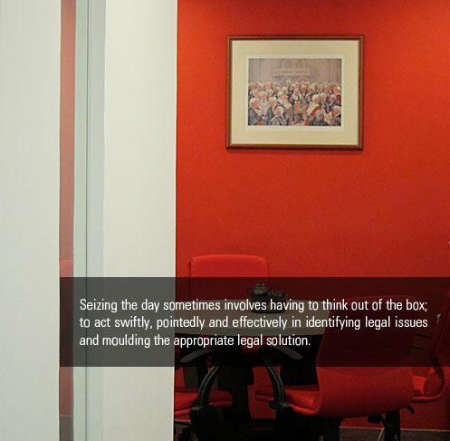 Seizing the day sometimes involves having to think out of the box; to act swiftly, pointedly and effectively in identifying legal issues and moulding the appropriate legal solution. In present times, we firmly believe that this must be a given in any legal practice if it is to meet the high demands and expectations of clients.